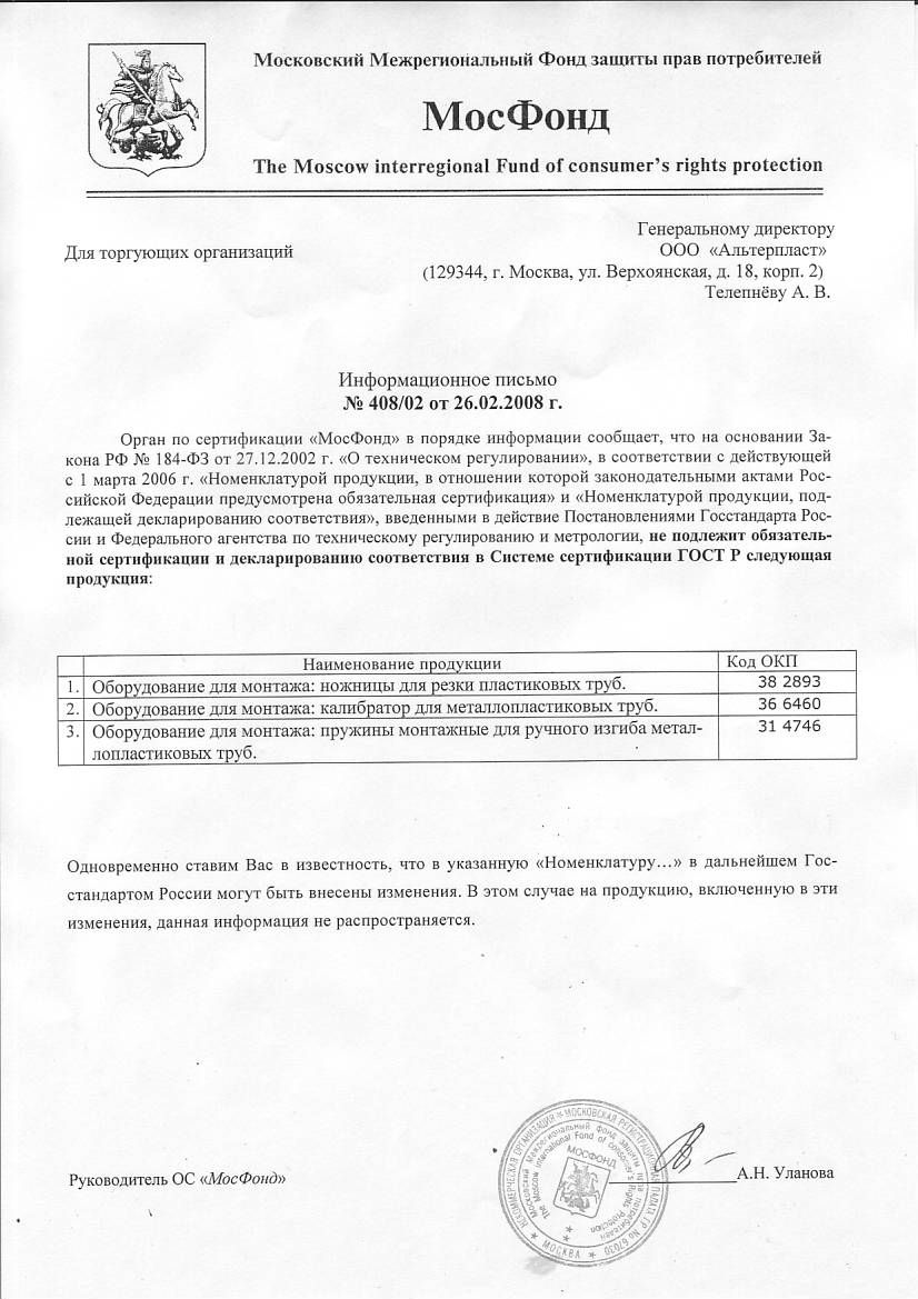 Отказное письмо по сертификации