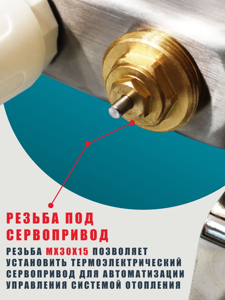 Предназначен для распределения потока теплоносителя в системах отопления по петлям (контурам) водяного "теплого пола"