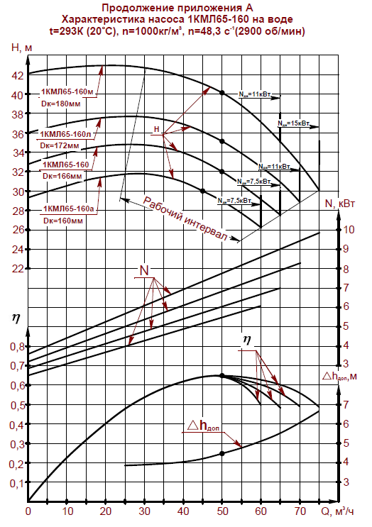 Диаметр рабочего колеса 180мм. Сальниковое уплотнение вала (возможно изготовление насосов с торцевым уплотнением).