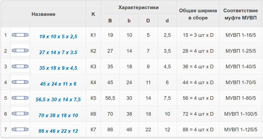 Соответствие муфте МУВП 1-40/5