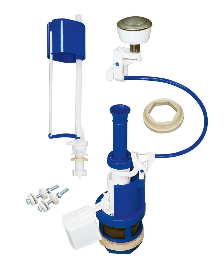 Арматура спускная с управлением донным клапаном через гибкую связь, позволяющая устанавливать её в смывные бачки разной высоты с одной регулировкой уровня воды.