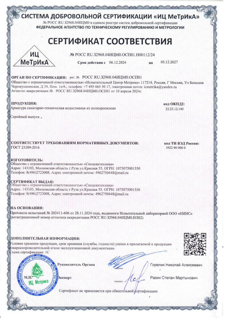Цвет сифона/трубки