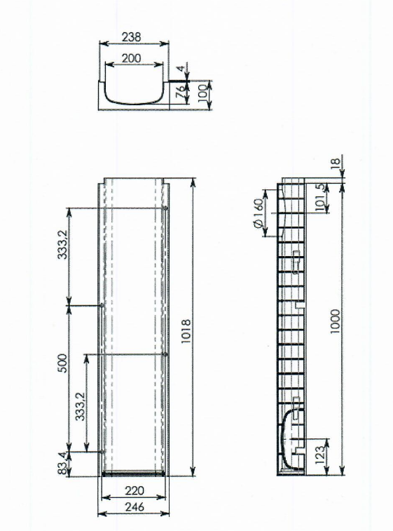 С нижней стороны возможно присоединение трубы ливневой канализации Ду 160мм, а сбоку диаметр 100мм
