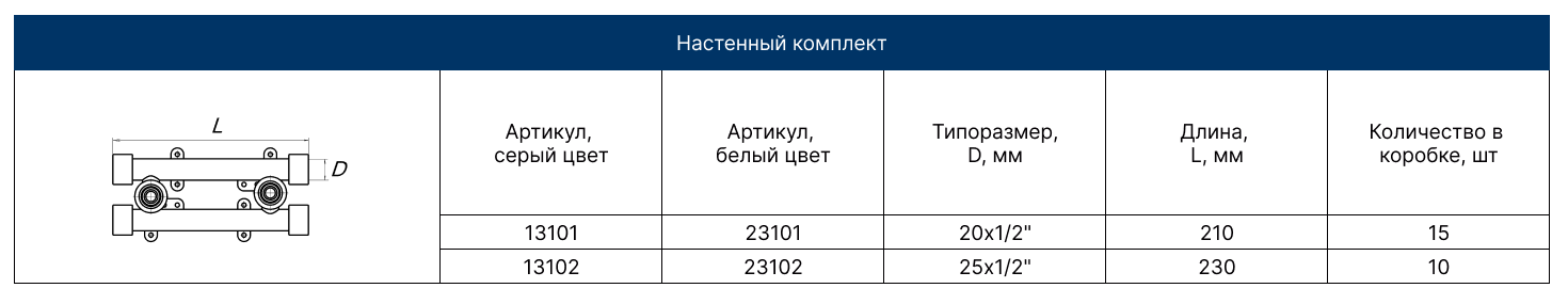 Настенный комплект служит для упрощения монтажа смесителей крепящихся к стене с двумя вводами для воды (для ванны, душа, настенные для моек)